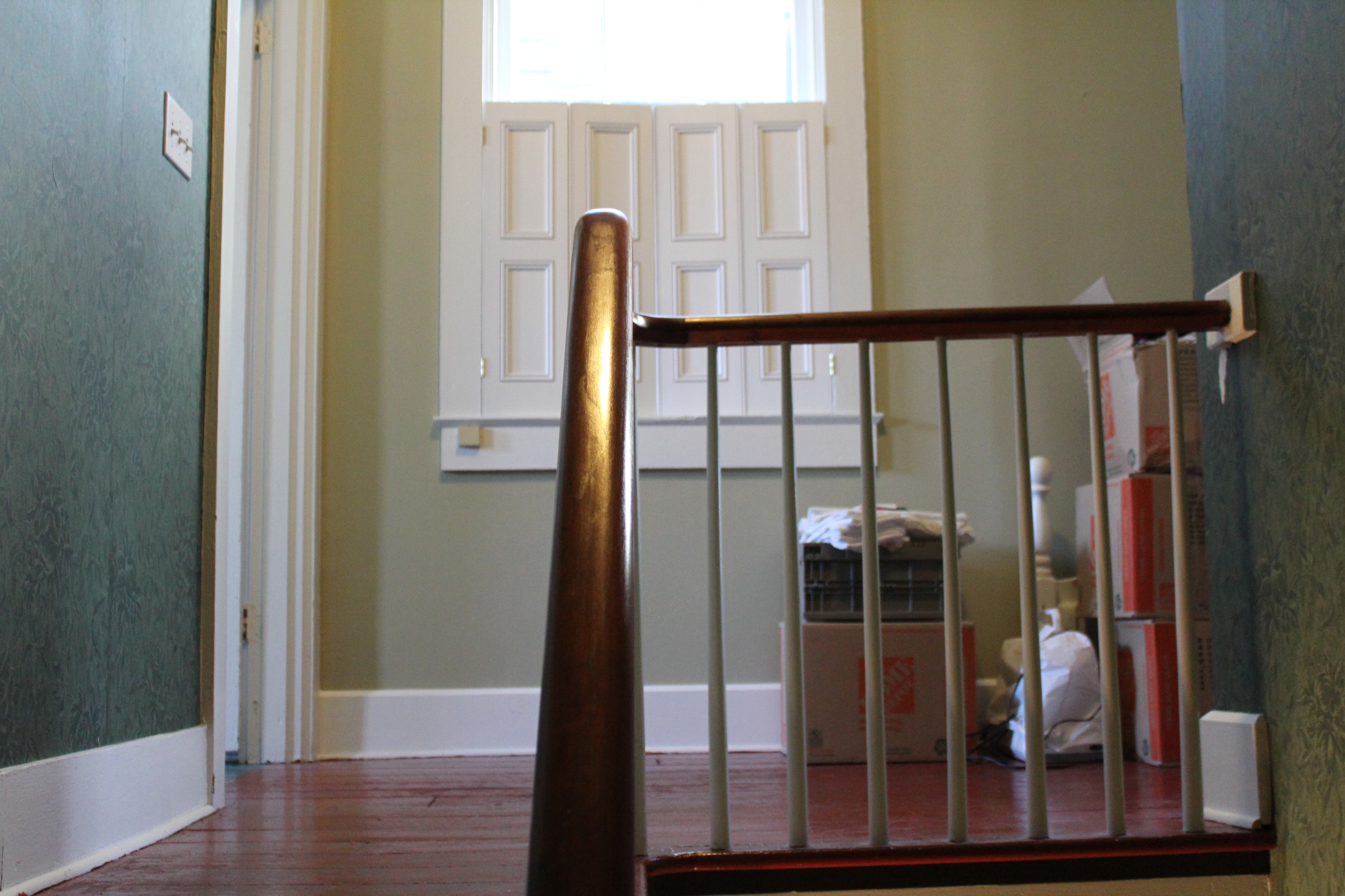 img_2978 Published December 7, 2016 at 3456 × 2304 in the West Street house ← Previous Next → Top of the stairs. Someday sewing area.
